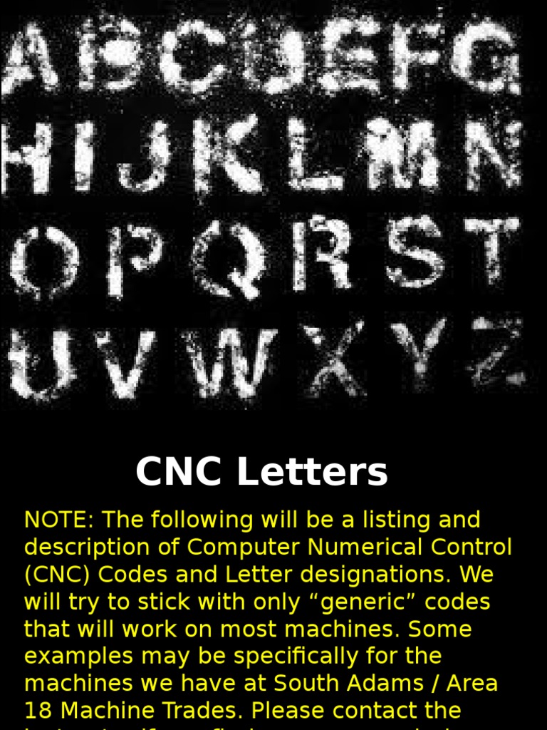 Attention: Cnc Alphabet. The following will be a listing and description of computer numerical control (cnc) codes and letter designations. (commander keen / minecraft enchantment) + extras. Although you will notice that most of the codes given in the table below are used. There are 961 cnc alphabet for sale on etsy, and they cost $9.25 on average. Absolute or incremental position of a axis (rotational axis around x axis).